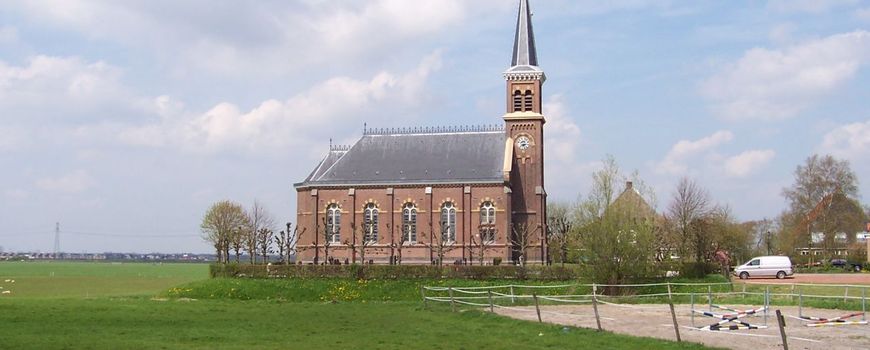 Foto: Bouwe Brouwer (leadfoto: Kerk te Warstiens, Friesland. Op de achtergrond is de oprukkende stad Leeuwarden te zien)