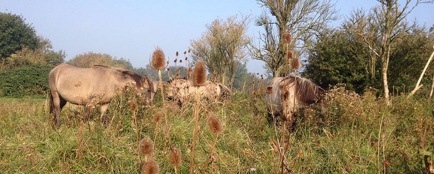 Grazers trekken deze periode van het jaar sowieso meer de ruigtes in. Hier vinden ze tussen de struiken nog de laatste overgebleven langere grassen. Maar ook wordt waargenomen dat soorten als haagwinde, smeerwortel, bijvoet, distel en brandnetel, soorten die eerder dit jaar nog niet gegeten werden, plotseling op het menu van de grote grazers komen te staan. En nog net voordat de bladeren van de bomen vallen wordt er flink gegeten van de Amerikaanse Vogelkers.