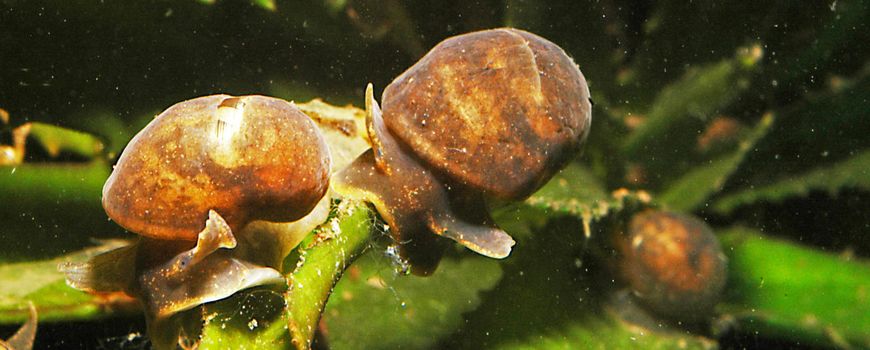 Foto’s: Adriaan Gmelig Meyling (leadfoto: Kleverige poelslakken (Myxas glutinosa) op Krabbescheer. Deze relatief zeldzame soort uit schoon, helder water dankt haar Nederlandse naam aan het feit dat de mantel over het dunschalige huisje heen ligt, waardoor de dieren een week, kleverig uiterlijk hebben); Bruyne et al. 2015; Sylvia van Leeuwen (Meyling en Van Leeuwen van Stichting ANEMOON en de Nederlandse Malacologische Vereniging)