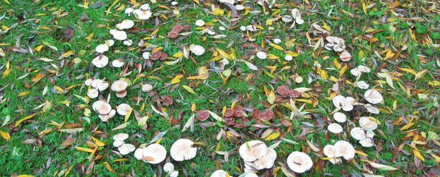 De afgelopen week kwamen er van verschillende locaties meldingen binnen van heksenkringen. Vooral uit de duinen komen berichten van heksenkringen van verschillend formaat bestaande uit Grote parasolzwammen (Macrolepiota procera). Maar ook van een gazon van een instelling in Heerhugowaard kwamen berichten van een aantal mooie heksenkringen. De mooiste is een grote heksenkring van de Populierenvaalhoed (Hebeloma populinum) met een doorsnede van 5 meter. Vlak daarnaast bevindt zich een kleinere heksenkring van de Populierenvaalhoed met daarbinnen een kleinere heksenkring bestaande uit Bleke wilgengordijnzwammen (Cortinarius urbicus). Een dergelijke heksenkring is zeldzaam, temeer omdat de Bleke wilgengordijnzwam blijkbaar genoegen neemt met een plek waar de Populierenvaalhoed de bruikbare elementen voor de groei al uit de grond heeft gehaald. Overigens leven beide soorten in symbiose met de naburige populieren en wilgen.