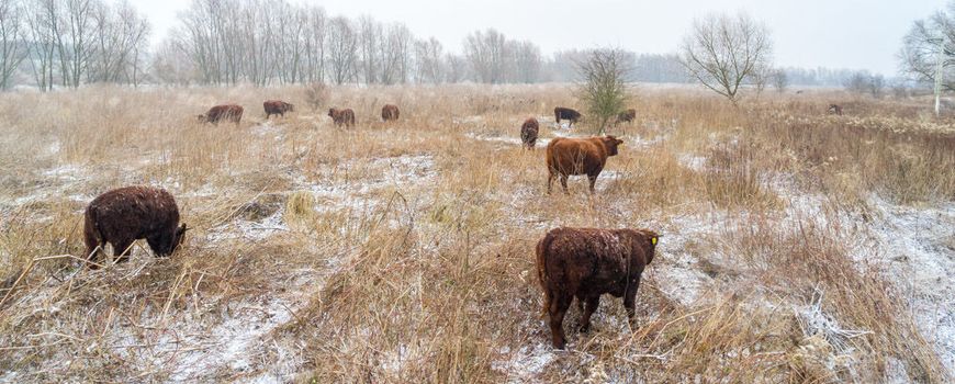 De gekozen rassen, hier Rode Geus en konik, zijn goed aangepast aan het leven in de natuur en voor deze paarden en runderen is het dan ook geen bezwaar om de hele winter buiten te blijven. In de loop van de zomer ontwikkelen ze een dikke speklaag en in de winter krijgen ze een extra dikke wintervacht, waardoor ze goed uitgerust zijn tegen de kou. Mocht aan het eind van de winter blijken dat de dieren te veel zijn afgevallen, dan wordt er bijgevoerd.