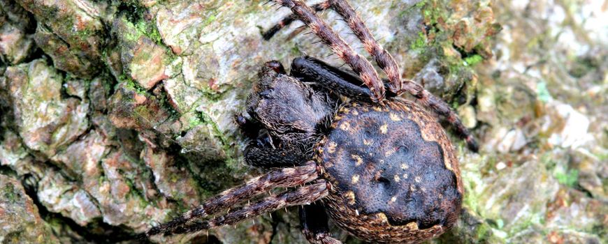 EIS Kenniscentrum InsectenDe platte wielwebspin (Nuctenea umbratica) is een algemene soort. Hij behoort tot de grote groep van wielwebspinnen, net als de bekende kruisspin. Toch kennen maar weinig mensen deze platte wielwebspin, omdat hij vooral 's nachts actief is. Het lijf is wat afgeplat zodat hij gemakkelijk weg kan kruipen. Overdag houdt de spin zich verborgen in spleten onder een raamkozijn of schutting. Hij is dan wel in verbinding met zijn web door middel van een signaaldraad. 's Nachts komt de spin tevoorschijn en zit hij midden in zijn web. Wie als het donker is met een zaklamp rondom het huis op zoek gaat, maakt een grote kans de platte wielwebspin te vinden.
