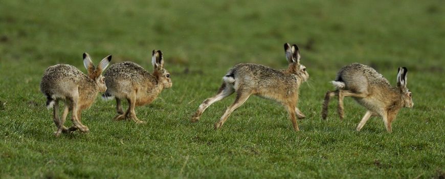 Als je de komende twee maanden zo’n grote groep hazen ziet, trek dan eens een halfuurtje uit om van dit mooie schouwspel te genieten. Probeer te ontdekken of je rammelaars, moeren en bijhazen kunt onderscheiden. Ongetwijfeld raak je dan in de ban van het rammelen!