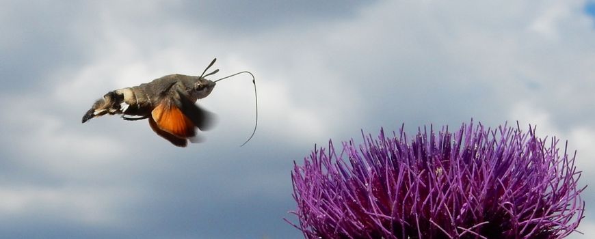 Het gedrag van de kolibrievlinder is precies hetzelfde als dat van zijn naamgenoot, de vogel uit Amerika. Hij staat snel vleugelklappend stil voor een bloem en zuigt de nectar eruit met zijn lange roltong, die wel wat lijkt op een kromme kolibriesnavel. Dan, als een schicht, verplaatst de vlinder zich en begint opnieuw te drinken. Dat heen en weer schieten van bloem naar bloem heeft hem de bijnaam ‘onrust’ opgeleverd. De vlinders vliegen overdag, vooral bij zonnig weer, maar soms ook bij bewolking of zelfs in lichte regen. Ze bezoeken allerlei soorten planten met buisvormige bloemen en worden ook af en toe in de schemering of in het donker waargenomen. De vlinders die we nu hier zien, zullen voor een deel doortrekken naar het noorden en voor een deel planten ze zich hier voort en sterven dan. De nakomelingen vliegen in augustus en die trekken weer terug naar zuidelijker streken. Ziet u er ook een in uw tuin, voer hem dan in bij de Jaarrond Tuintelling. Daar kunt u ook al de andere vlinderwaarnemingen uit uw tuin kwijt.