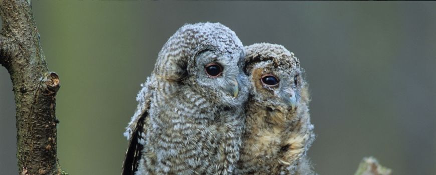 De roep van jonge bosuilen die eerder het nest verlaten, is meer krijsend, schor. Luister hier naar het verschil.
