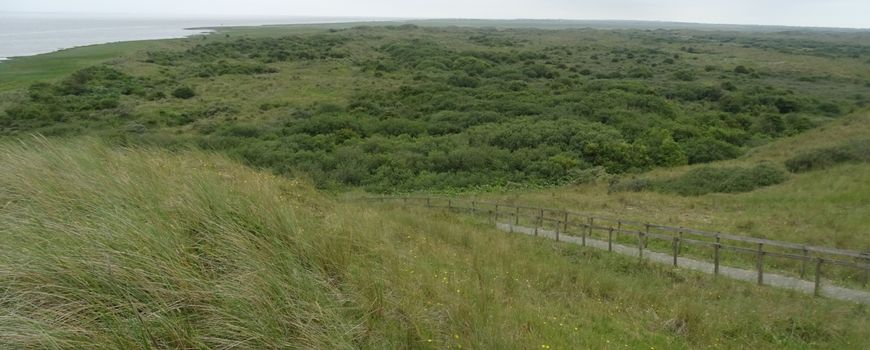 Leadfoto: Ameland (16 juli 2017), uitzicht op de duinen van ‘t Oerd vanaf een uitkijkpunt aan de westkant van het duingebied.