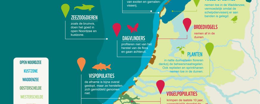 WWF NederlandDit staat in het Living Planet Report ‘Zoute en Zilte Natuur in Nederland’. Het rapport is een samenwerking van het Wereld Natuur Fonds (WNF) met de soortenorganisaties, Sovon en Naturalis Biodiversity Center. Dit tweede rapport over trends in dierpopulaties in Nederland concentreert zich op de Zuidwestelijke Delta, de Waddenzee, de Noordzee, de kust en de duinen. Niet eerder werden voor deze gebieden zoveel data van onderzoeksinstellingen en de soortenorganisaties over diersoorten samengebracht en geanalyseerd.