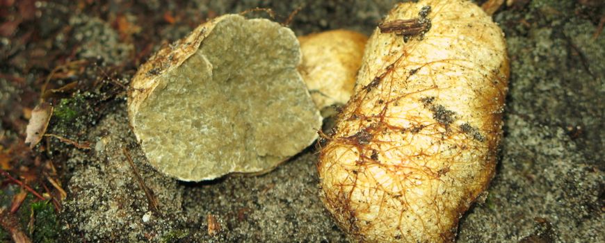 Nederlandse Mycologische VerenigingIn de Staatsbossen van Schoorl worden regelmatig truffels gevonden. De bekendste truffel is wel de Okerkleurige vezeltruffel (Rhizopogon luteolus). Deze soort is niet zeldzaam in Nederland en kan vrijwel overal op de hogere zandgronden onder dennen (Pinus) worden gevonden. Bij het grote publiek behoren truffels tot de meest aansprekende groep van paddenstoelen die er zijn. Dit heeft vooral te maken met de culinaire toepassingen van enkele (peperdure) truffelsoorten uit mediterrane streken.