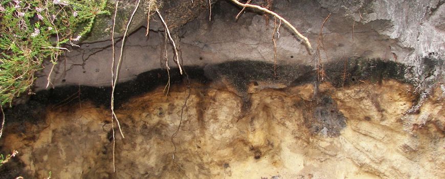 Foto's: Nikanos, CC BY-SA 2.5-licentie (leadfoto: podzol op de Lüneburger Heide (Duitsland)); Perro de Jong, NIOO-KNAW