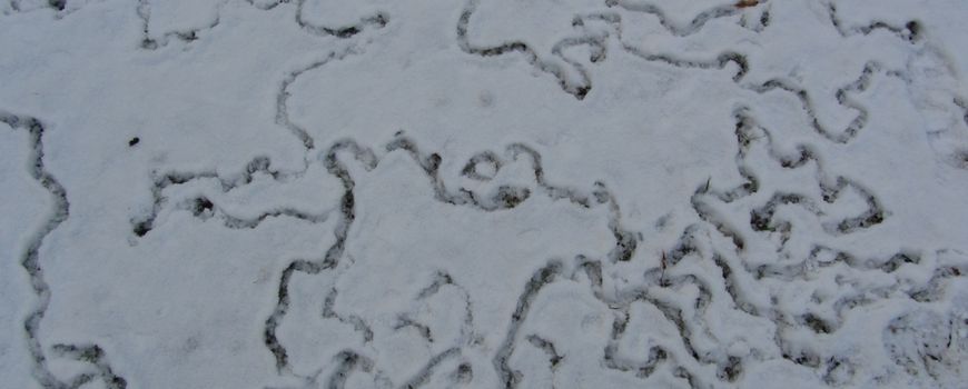 Een dun sneeuwlaagje verraadt ook de aanwezigheid van kleine dieren zoals muizen, woelmuizen en spitsmuizen. Maar bij een laag van enkele centimeters dik maken deze soorten tunneltjes half in de sneeuw en half in de onderlaag. Zo onttrekt de sneeuwlaag ze aan het spiedend oog van torenvalk of uil. En zodra de sneeuw van bovenaf smelt, worden hun - vaak in prachtige, grillige patronen verlopende - looppaadjes zichtbaar: ware kunstwerkjes!