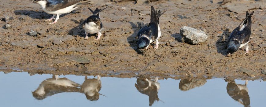 Als je liever geen kunstnesten ophangt, kun je huiszwaluwen ook helpen met een plek in je tuin waar ze leem en klei kunnen verzamelen. Een modderpoeltje dus, waar ze de 1000 modderbolletjes kunnen vinden waarmee huiszwaluwen hun nest fabriceren.”