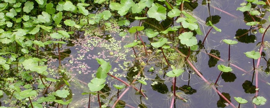 FLORONGrote waternavel (Hydrocotyle ranunculoides) is een van oorsprong Noord-Amerikaanse soort die via de handel in vijver- en aquariumplanten over de wereld verspreid is geraakt. In Nederland werd de soort voor het eerst waargenomen in 1994. Grote waternavel bleek zich al gauw uitstekend thuis te voelen in onze zeer voedselrijke sloten en kanalen en het milde klimaat. In voedselrijke wateren worden er in korte tijd dikke, drijvende matten gevormd, die watergangen compleet overwoekeren. Door gebrek aan ruimte, licht en zuurstof wordt de overige waterflora en –fauna volledig weggeconcurreerd. Daarnaast kan het volgroeien van watergangen leiden tot een verminderde doorstroming van water en het blokkeren van gemalen en stuwen. Als gevolg hiervan kunnen waterpeilen stijgen, met in het ergste geval overstromingen tot gevolg. Ook de recreatievaart ondervindt hinder door de enorme massa waterplanten. Waterschappen en terreinbeheerders hebben het dan ook druk met de bestrijding van deze invasieve waterexoot.