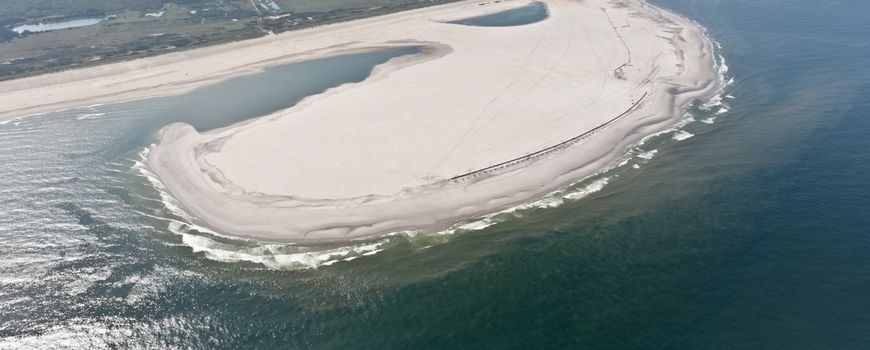 Provincie Zuid-HollandTussen maart en november 2011 hebben Rijkswaterstaat en de provincie Zuid-Holland de Zandmotor aangelegd. Het schiereiland steekt één kilometer ver in zee en is aan het strand twee kilometer breed. Sleephopperzuigers hebben het zand tien kilometer ver uit de kust vandaan gehaald. In totaal was er 21,5 miljoen kuub zand nodig. Dat staat gelijk aan 800 Olympische zwembaden. De bedoeling is dat zeestromingen het zand voor ons op de juiste plek leggen. Door in één keer een grote hoeveelheid zand te storten, voorkomen we herhaaldelijke verstoring van de kwetsbare zeebodem. Een mooi voorbeeld van ‘bouwen met de natuur’.