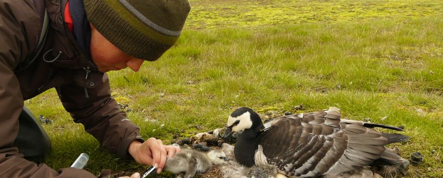 Nederlands Instituut voor Ecologie (NIOO-KNAW)Klimaatverandering gaat extra snel in het hoge noorden. Het voorjaar begint er steeds eerder, en daardoor kunnen trekvogels uit het zuiden te laat aankomen op de toendra. Ze missen dan de voedselpiek: de meeste insecten of de beste kwaliteit gras, belangrijk voor hun kuikens om snel te kunnen opgroeien. NIOO-onderzoeker Thomas Lameris laat met gezenderde vogels zien dat brandganzen hun aankomsttijd in het broedgebied wel kunnen aanpassen: in warmere jaren vliegen ze sneller door. “Maar dat wil nog niet zeggen dat de problemen dan zijn opgelost.”