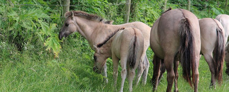 Foto: Leo Linnartz, ARK Natuurontwikkeling (leadfoto: konikpaarden eten reuzenberenklauw op de Slikken van Heen)