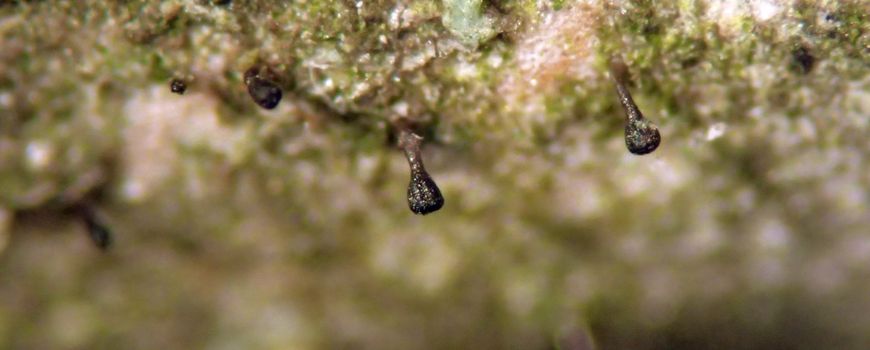 Het Populierenspijkertje is een onopvallende soort die kleine zwarte spijkertjes vormt op takken van populieren. Eigenlijk is deze soort geen echte korstmos maar een vrijlevende schimmel. Een korstmos is een symbiose tussen een schimmel en een alg. Het Populierenspijkertje bestaat alleen uit een schimmel en leeft niet samen met een alg. Toch wordt deze soort altijd in boeken over korstmossen opgenomen. Dit komt doordat de soort lijkt op soorten schorssteeltjes en boomspijkertjes, zoals het algemene Grijs schorsteeltje. De meest soorten uit deze groep groeien in droge schorsspleten of op droog dood hout. Sommige soorten zijn specifiek gebonden aan twijgen van één boomsoort. Net als andere boomspijkertjes is het Populierenspijkertje zo klein dat het alleen met een sterke loep goed te bekijken is.