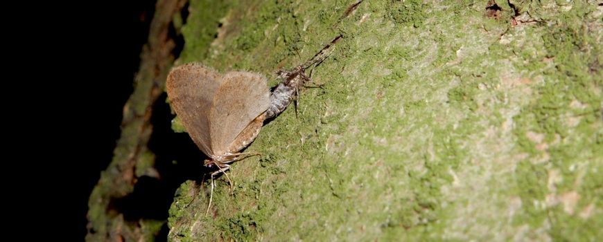 De mannetjes scholen samen op boomstammen en in de toptijd kunnen er tientallen bij elkaar zitten. Ze zitten vaak met hun vleugels omhoog, waardoor de lichte ‘zeiltjes’ erg opvallen als je met een zaklamp de bomen beschijnt. De mannetjes wachten op vrouwtjes die in de strooisellaag onder de bomen zijn verpopt. Als ze uit de pop komen, kruipen ze naar boven toe de stam op. Vrouwtjes kunnen namelijk niet vliegen, want ze hebben in plaats van vleugels alleen maar wat kleine stompjes. Omhoog gekropen worden ze opgewacht door de mannetjes en de eerste de beste ontmoeting leidt tot een paring. Na die paring kruipt het vrouwtje verder omhoog om daar haar eitjes te leggen. De eitjes komen uit in het voorjaar, als ook het jonge blad ontluikt. De rupsen kunnen van veel verschillende bomen en struiken leven, maar eik is een favoriet. Wil je de kleine wintervlinder te zien krijgen, ga dan de komende tijd met een zaklamp op pad en beschijn de stammen van bomen. Dat kan in een uitgestrekt bosgebied zijn, maar ook in een stadsparkje. Zoek wel vooral op plekken waar niet te veel licht is.