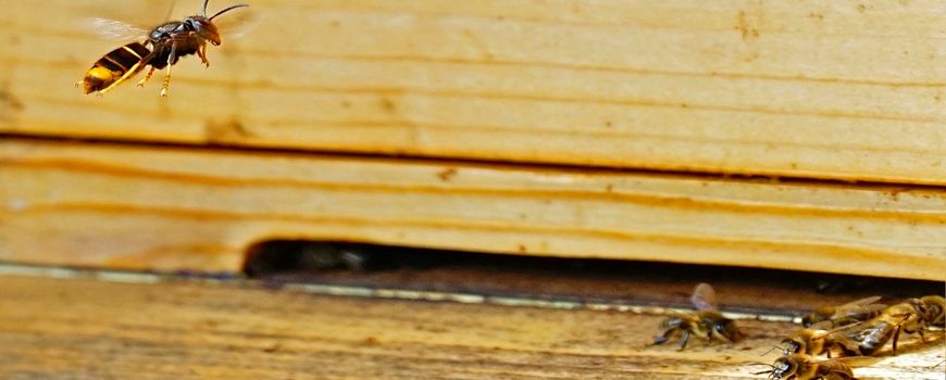 Foto’s: Lex Tervelde, NVWA (leadfoto: Aziatische hoornaar voor vliegopening bijenkast); NVWA; Linde Slikboer, EIS Kenniscentrum Insecten