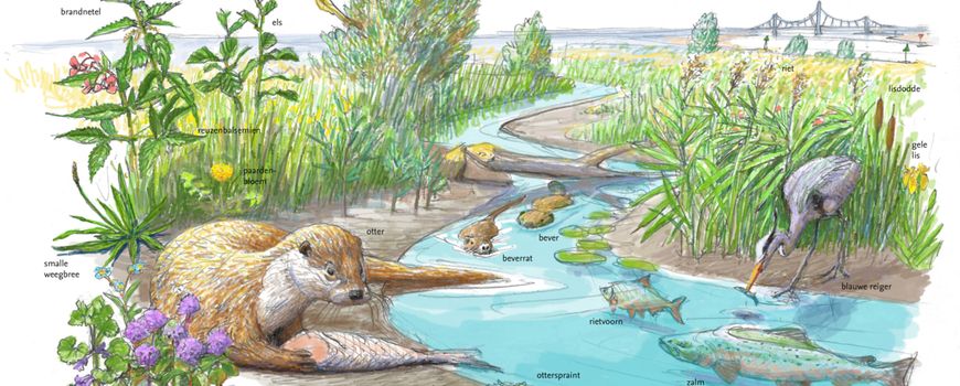 De tekening waarmee de kinderen op avontuur kunnen gaan in het gebied is gemaakt door ARK-tekenaar Jeroen Helmer en is voor iedereen gratis te downloaden. Op de tekening is het leefgebied van de otter in de Duits-Nederlandse grensregio te zien. Als de otter terugkeert langs de rivieren vindt hij een gespreid bedje. Er zijn nieuwe zijgeulen aangelegd, de vissen zijn weer volop aanwezig en oeverplanten hebben meer ruimte gekregen. En nu het landschap klaar is voor zo’n kritische soort als de otter, profiteren andere soorten mee, zoals bever, aalscholver, voorn en zalm. Bovendien kennen dieren geen grenzen, dus vindt er een vrije uitwisseling plaats van Nederlandse otters met dieren in Duitsland.