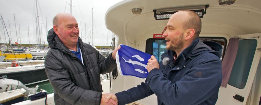Naast een steurenvlag, ontving schipper Mathijssen ook een steurensticker waarop in enkele simpele stappen direct te zien is wat je moet doen als je een steur vangt. Een hele eer volgens de stuurman: “Het was niet alleen heel bijzonder zo’n zeldzame steur tegen te komen, maar ik ben ook trots dat ik een klein beetje meer informatie over de steur heb kunnen leveren. Het is tenslotte niet elke dag dat je zo’n speciale vis vangt. Ik ben blij dat hij weer rondzwemt”.