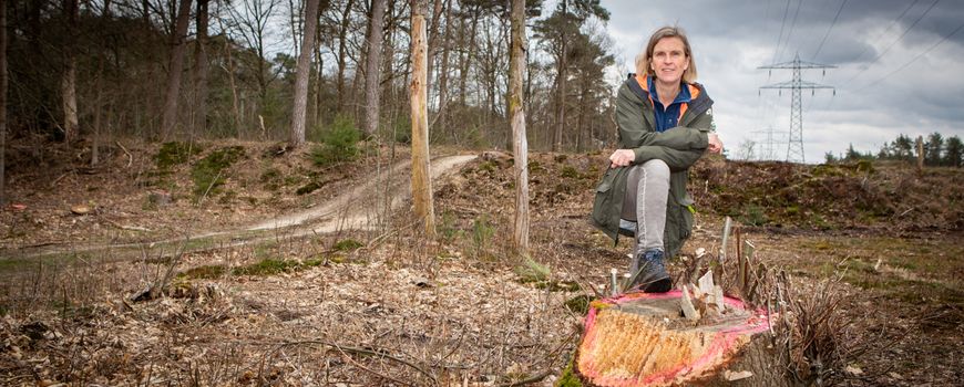 Onder de hoogspanningsverbinding zijn bomen gekapt. “Als bomen te dichtbij de geleiders van de verbinding komen, ontstaat de kans op zogenoemde overslag”, legt Renée uit. “Door overslag ontstaat er voor mensen en dieren een gevaarlijke situatie. Denk aan elektrocutie of natuurbrand. Ook kan dan de levering van stroom in het geding komen. Hierdoor gaat letterlijk het licht uit.”