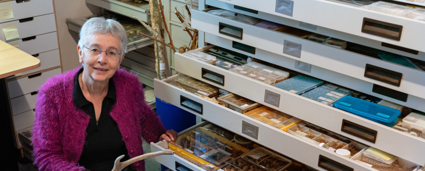 Het duurde even voordat Annemarie een boek wilde uitgeven. "Nadat ik een cursusboek voor de KNNV en IVN in elkaar geknipt en geplakt had, kwam in 1989 de vraag van KNNV Uitgeverij voor een boek, maar ik vond dat ik nog te weinig kennis had. Tien jaar later, waarvan drie jaar schrijven, lag mijn eerste boek dan toch in de winkels. Twintig jaar veldonderzoek samengevat in vierhonderd pagina’s." Het boek werd een groot succes. Naast de vijf gebonden uitgaven van de KNNV bracht Natuurmonumenten twee eigen drukken uit. Ook verscheen in 2010 een tweede gids over zoogdieren in Europa, die ze samen met andere auteurs schreef. Op dit moment werkt ze aan een nieuwe veldgids Diersporen met uitbreiding van soorten en spoortypen uit heel Europa. Deze verschijnt in oktober 2019. Het is monnikenwerk, waardoor haar geliefde vrijwilligerswerk bij de IVN-amfibieënwerkgroep in Veghel, het monitoren van dassenburchten in de Maashorst voor de Brabantse Dassenwerkgroep en haar bijdrage aan het Bunzing- en Boommarterproject tijdelijk moet wijken. "Ja, daar heb ik wel wat moeite mee. Maar twee weken relmuissporen verzamelen in Duitsland doet me dan weer erg goed. Ik heb eindelijk takken met ringsporen gevonden. Deze kan ik mooi toevoegen aan mijn sporencollectie!" Die collectie is enorm én museumwaardig. Dat beseft Annemarie ook. "Mijn werkkamer puilt uit. Ik hoop dan ook dat een museum het over wil nemen. Er zitten unieke objecten uit heel Europa bij. Completer ga je het niet krijgen!"