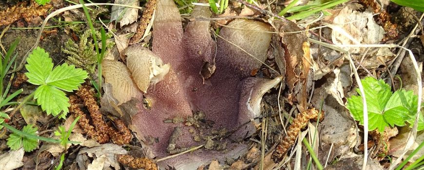 Bart Horvers kwam met de suggestie dat het wel eens de Kroonbekerzwam (Sarcosphaera coronaria) zou kunnen zijn. De Kroonbekerzwam heeft een grote beker van drie tot tien centimeter breed. Het is een voor Nederland nieuwe soort, die al wel een Nederlandse naam had dankzij enkele vondsten bij onze zuiderburen. Deze grote bekerzwam is net zo'n typische voorjaarssoort als bijvoorbeeld het Morielje. De Kroonbekerzwam groeit eerst als een vuilwitte holle bolvorm ondergronds en pas bij het rijpen breekt hij door het aardoppervlak heen. De bovenrand van de beker kan dan splijten in een aantal slippen, de kroon. Dikwijls neigen deze naar buiten, waarbij de kenmerkende paarse binnenzijde goed zichtbaar wordt. Hier worden de sporen gevormd. Verwarring met soorten grondbekerzwammen (Geopora spec.) is mogelijk, maar de reactie met jodiumhoudend reagens kleurt bij de Kroonbekerzwam de toppen van de asci blauw. Deze blauwverkleuring doet zich niet voor bij de grondbekerzwammen.