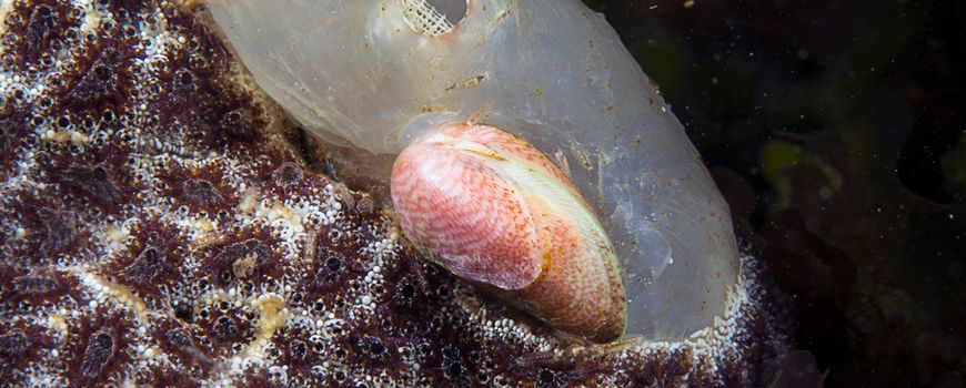Naschrift: In maart 2019 blijkt de Gemarmerde streepschelp ook nabij de Zeelandbrug gevonden te zijn met de Ruwe zakpijp.