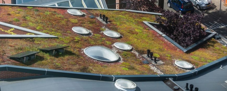 Atlas LeefomgevingDe gevolgen van klimaatverandering zijn al lang niet meer een ver-van-ons-bed-show. Nog geen maand geleden kreeg een deel van Europa te maken met extreme hitte en passeerde de thermometer in Nederland de magische grens van 40 graden Celcius. We hebben nu al te maken met extremen. Daarom moeten we ons aanpassen aan het veranderende klimaat. Onze daken kunnen hierbij helpen. Vergroenen van een dak heeft allerlei voordelen ten opzichte van een standaard (bitumen) dak. Zo heeft een groendak een betere isolatiewaarde, een langere levensduur, een (tijdelijk) waterbergende functie en een lokale verkoelende functie. Daarnaast zorgt uitzicht op een groendak voor een positieve bijdrage aan de gezondheid en is een groendak een stimulans voor de biodiversiteit. Een groendak kan een simpel sedumdak zijn met kleine vetplantjes, tot een hele tuin waar je op kan recreëren en voedsel verbouwen.