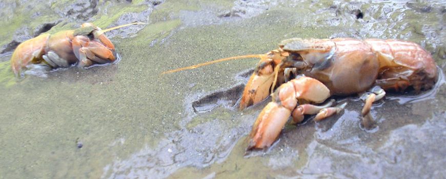 Foto's: David Tempelman (leadfoto: twee exemplaren van de Harige of Grote molkreeft (Upogebia deltaura)); Ton van Haaren