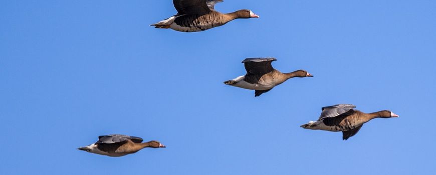 Kolgans en toendrarietgans komen in het najaar vanuit hun broedgebieden en ruiplaatsen in Noord-Rusland en West-Siberië naar Nederland. Onderzoek aan gezenderde individuen liet zien dat kolganzen in het najaar in korte tijd naar de winterkwartieren in onze omgeving vliegen. In het voorjaar keren ze terug naar het broedgebied via een netwerk van langere tussenstops (bij de meeste andere vogelsoorten verloopt juist de voorjaarstrek sneller). In het najaar van 2017 waren er aanwijzingen dat de ganzen onderweg vanuit Rusland korte of langere tussenstops hebben ingelast in de Baltische Staten en Duitsland. Hier werden veel meer gekleurringde vogels (voorzien van halsband met code) afgelezen dan in andere jaren. Het wordt spannend om te volgen of dit structureel gaat worden, en wat dan de achtergronden zijn. Denk bijvoorbeeld aan toegenomen voedselaanbod in deze gebieden. Zo bleef hier in oktober 2017 veel oogstafval liggen door overvloedige regenval. Veranderingen in landgebruik kunnen ook meespelen.