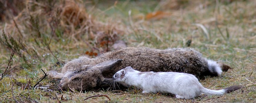 Foto's: Dick Klees, Studio Wolverine (leadfoto: hermelijn met prooi (volwassen konijn)); Wim Smeets