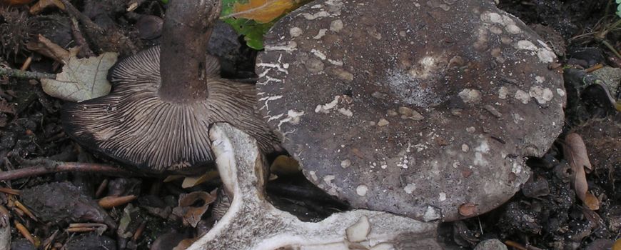 Nederlandse Mycologische VerenigingDe groep rondom de Grofplaatrussula (Russula nigricans), die het makkelijkst te herkennen is uit de Compactae-familie, is best ingewikkeld. Zo'n russula wordt soms ook nog bezet door de Poederzwamgast (Asterophora lycoperdoides), die het determineren nog moeilijker kunnen maken. De zwarte hoed en grove wijde lamellen, en het vlees dat bij doorsnijden verkleurt van rood naar zwart, zijn onmiskenbaar voor de Grofplaatrussula.