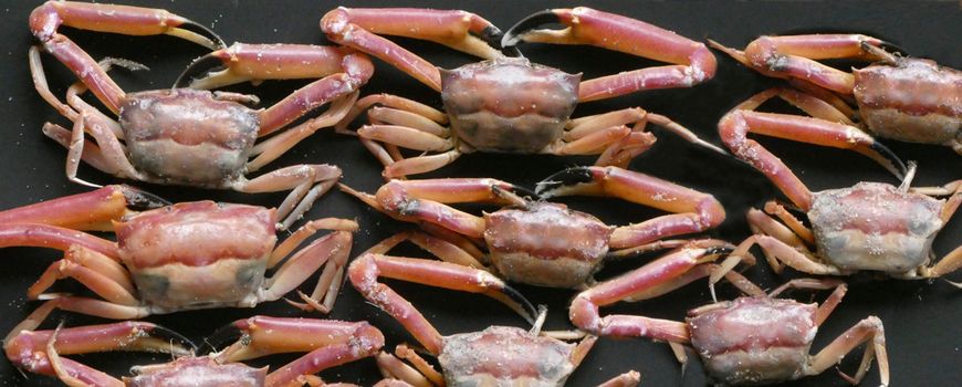 Foto's: Gerrit Doeksen (leadfoto: compilatie van in totaal zeven Hoekige krabben, gevonden door Gerrit Doeksen en Kees en Hannie Peeters op 6 en 7 januari 2020 op Terschelling, tussen paal 11 en 19); Rykel de Bruyne.