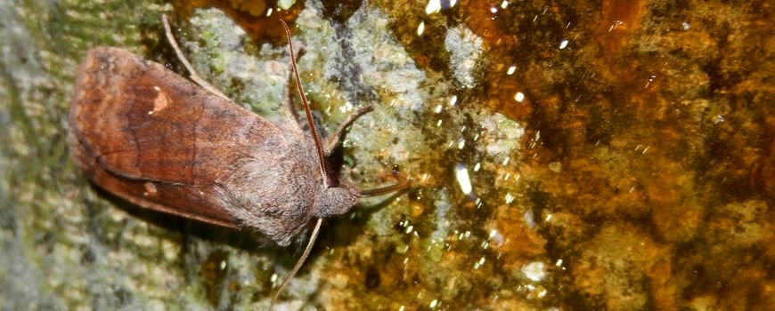 Ook sommige nachtvlinders zijn in de winter vlinder. Normaal gesproken zijn die actief in december, maar gaan ze in rust tijdens de hele koude perioden in januari en februari. Dit jaar zijn bijna elke nacht wel van deze vlinders gezien, want echt koud is het nog niet geweest. Er zijn soorten die op licht af komen. Veel van de spanners bijvoorbeeld, zoals de perentak en de kleine en grote voorjaarsspanner. Anderen zijn gek op zoetigheid en zijn te lokken met behulp van smeer. Je hoeft alleen maar een zoete stof met stroop of appelstroop en veel suiker, aangevuld met wat alcohol, rond zonsondergang op de stam van een boom te smeren en een uurtje later met een zaklamp die gesmeerde plekken af te zoeken. Dit kan leuke waarnemingen opleveren! De zwartvlekwinteruil is bijvoorbeeld al actief in november en laat zich meestal in januari, als het koud is, wat minder zien. Dit jaar zijn er echter eigenlijk continu waarnemingen van. Ook de wachtervlinder (leadfoto) en andere uilen worden de hele maand al regelmatig op stroop aangetroffen.