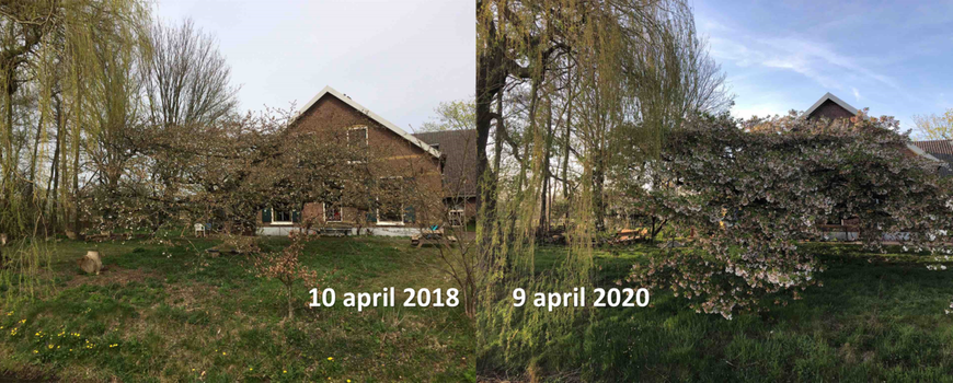 De Natuurkalender, GLOBE Nederland, Wageningen UniversityHet weer begin april was prachtig. Zeer hoge temperaturen, droog en heel veel zon. Na de zeer warme start van het jaar blijven het dus voorlopig interessante tijden voor biologen die kijken naar hoe de natuur reageert op het veranderende klimaat. Sinds het voorjaar van 2017 hebben we de GrowApp als extra instrument. Met de GrowApp kun je eenvoudig een timelapsevideo maken van de ontwikkeling van de planten in een tuin, straat, weiland, akker of natuurgebied. De GrowApp laat je op een kaart zien waar je de eerste foto hebt gemaakt. Bij het maken van een nieuwe foto krijg je de eerste foto half doorzichtig in beeld zodat je de nieuwe foto precies over de eerste kunt maken (zie instructie). De GrowApp voegt vervolgens elke nieuw gemaakt foto toe aan de timelapsevideo die dan ontstaat. De langste series bestaan inmiddels uit enkele honderden foto’s en geven een schitterend beeld van de seizoensveranderingen in de afgelopen paar jaar.