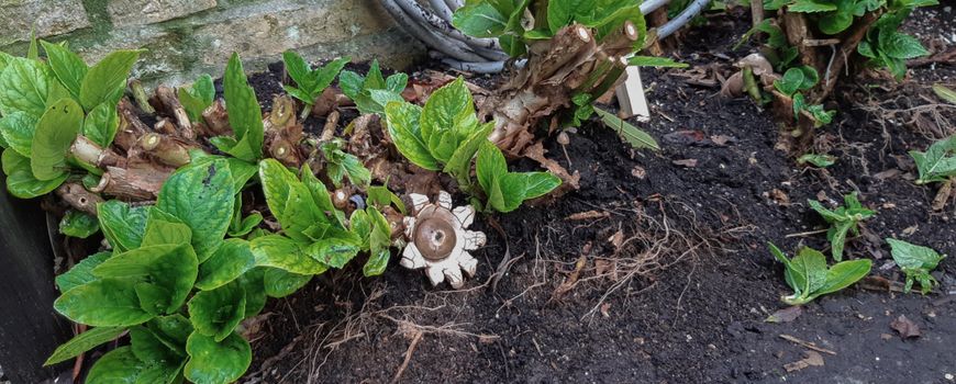 Nederlandse Mycologische VerenigingDe Tuinaardster (Geastrum smardae) dankt zijn naam aan zijn voorkeur voor sterk door de mens beïnvloede standplaatsen zoals tuinen en plantenbakken. De soort is in heel Europa uiterst zeldzaam en wordt gemeld van tuinen, fabrieksterreinen en kinderspeelplaatsen. De Tuinaardster heeft zijn hoofdverspreiding in Noord-Amerika en is in Europa waarschijnlijk adventief, dat wil zeggen aangevoerd als gevolg van menselijk handelen. De enige bekende Nederlandse vondst is die uit 1992 in een plantenbak in Beek (Zuid-Limburg). De nieuwe vondst komt uit een andere hoek van het land, namelijk Gaast in Friesland. Hubert Kivit vond de aardsterren daar vorig jaar september in een border met Hortensia's. Gedurende een aantal weken kwamen er af en toe nieuwe exemplaren bij.