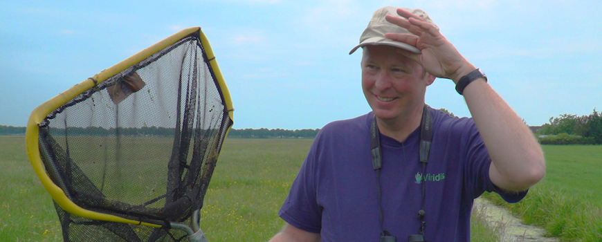Bioloog Sietze van Dijk van Bureau Viridis aan het werk tijdens zijn inventarisatie (Bron: provincie Utrecht)