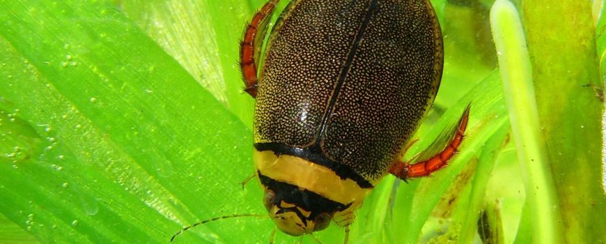 EIS Kenniscentrum InsectenDe gestreepte waterroofkever (Graphoderus bilineatus) is één van de ruim honderd soorten waterroofkevers in Nederland. Onder het grote publiek is daarvan de geelgerande waterroofkever (Dytiscus sp.) het meest bekend. De gestreepte waterroofkever is vergeleken met een geelgerande waterroofkever ongeveer half zo groot (circa 1,5 centimeter) maar niet minder fraai. Opvallend is de brede gele dwarsband op het halsschild, waar de soort de Nederlandse naam aan te danken heeft. Het is echter niet de enige soort met een gele dwarsband, waardoor de soort verward kan worden met andere, algemenere soorten. Zie de figuur voor een overzicht van de kenmerken.