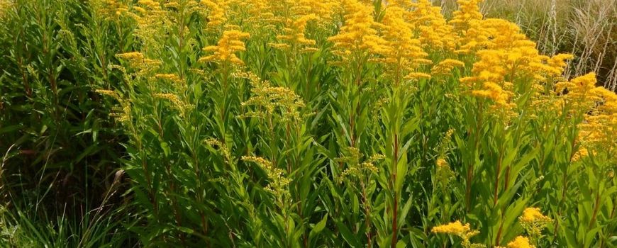 In steden en verlaten gebieden komt de gele kleur van de late guldenroede tevoorschijn. Deze late gele bloemen hebben we, net als de canadese guldenroede, te danken aan invoering vanuit Amerika. Wellicht herken je de bloemen uit de bloemenwinkel. Deze plant wordt namelijk ook gebruikt in boeketten. Waarom de plant de ‘late’ guldenroede heet, is niet helemaal duidelijk. Ze bloeit namelijk juist iets eerder dan de echte guldenroede.