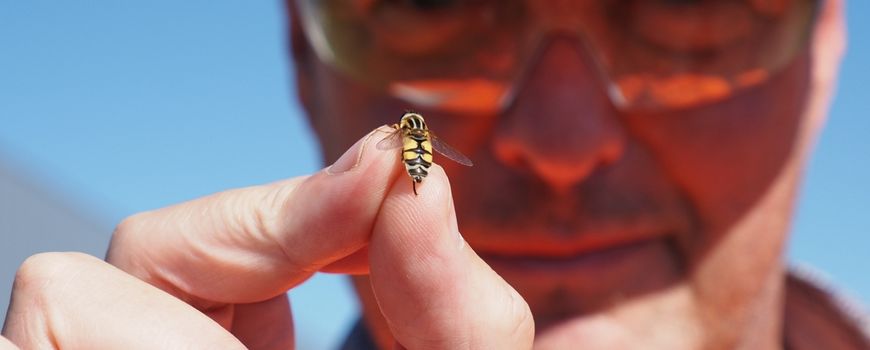 Monitoring juni 2020De eerste nulmeting in juni heeft laten zien dat er op de open grasvelden en braakliggende akkers weinig tot geen bestuivers te vinden zijn, maar dat de grote diversiteit aan bloeiende plantensoorten langs de sloten en dijken rondom het terrein zeer aantrekkelijk is voor bestuivers. Door middel van potvallen en vangnetten heeft een team van Naturalis in twee dagen tijd verschillende soorten bestuivers aangetroffen in deze delen van het terrein, zoals aardhommels, akkerhommels, weidehommels, honingbijen, zandbijen, diverse zweefvliegsoorten en vlinders. |