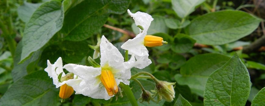 Heb je de aardappelplanten al zien bloeien? Eén van Nederlands meest bekende teeltgewassen staat in bloei en kleurt alle akkers waarop hij staat wit. Onder de grond groeien, aan lange uitlopers, de aardappels zelf. Eind september zijn de planten weer uitgebloeid. Vanaf dan zullen de aardappels geoogst worden.