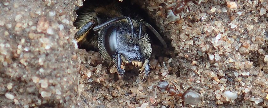 Dat het hard kan gaan met nieuwkomers laten de breedbandgroefbijen zien. Die kwamen vorig jaar, als zeldzame bij, vanuit het zuiden pas in juni voor het eerst in de kuilen. Dit jaar vlogen ze er al in april, dus dat was eigen broed. Momenteel zijn dit de algemeenste bijen in de kuilen. Ze hebben de voorkeur voor het bovenste, lemige deel van de steilrand. Breedbandgroefbijen leven sociaal, met meerdere vrouwtjes in hetzelfde nestgat. Later uitgeslopen vrouwtjes werken tijdelijk als werkster voor de eersteling.