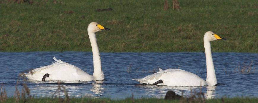 De wilde zwaan is de nationale vogel van Finland, maar overwinteren doen ze ook in Nederland. Het is een grote zwaan die in eerste instantie misschien lijkt op ‘onze’ knobbelzwaan, maar als je naar de snavel kijkt, zul je het verschil direct zien. Wilde zwanen zijn ook slanker, en dat komt ze goed van pas: het zijn trekvogels. Nederland bevindt zich aan de zuidwestelijke rand van hun overwinteringsgebied, maar elk jaar worden er weer meer wilde zwanen gespot. De eerste individuen zijn al waargenomen, maar pas halverwege oktober zullen hun aantallen in Nederland snel oplopen.