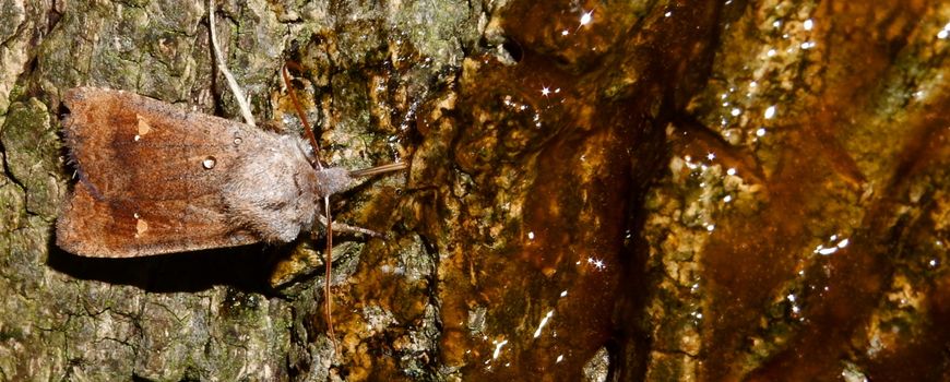 Zolang het nog niet erg koud is, en terwijl ik dit schrijf is het 20 graden op 2 november, zijn deze uilen actief en kun je ze in het donker zien foerageren op bloeiende planten zoals klimop, of je kunt ze lokken met smeer of licht.. De wachtervlinder (Eupsilia transversa) is een gewone soort die voorkomt in loofbossen, struwelen, parken en tuinen, verspreid over het hele land. De rups is ook niet erg kritisch en leeft van allerlei loofbomen en struiken, waaronder eik, sleedoorn, meidoorn, iep en Spaanse aak. De wachtervlinder vliegt van begin september tot half november, en na de overwintering van half januari tot half mei in één generatie. Maar ook midden in de winter, tijdens milde winternachten in december en januari, zijn de vlinders wel actief.