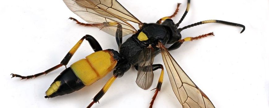 Foto's: Ludwig Jansen (leadfoto: Ichneumon stramentor, de sluipwespsoort die tot nu toe het meest overwinterend wordt aangetroffen in dood hout. Dit is een vrouwtje); Patrick Debeuf