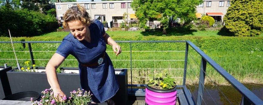 Zelf woont Ireen in een woonboot met ruime tuin in Amsterdam-Noord. “Maar niet iedereen is gezegend met veel buitenruimte. De meeste stadsbewoners moeten het doen met een balkonnetje of minituintje. Een composthoop op zo’n kleine oppervlakte, dat is geen goed idee.” Zo kwam Ireen op het idee om wormenbakken te ontwerpen. Die kun je overal plaatsen en zo kun je toch zelf aan de slag met zelf composteren. Van huis uit is Ireen industrieel ontwerper. “Daarom vond ik het ook belangrijk dat mijn wormenbak er leuk uitziet!,” vertelt ze. “Het resultaat is de Balkonton Classic. Deze verticale tuin heeft een doorsnede van 40 centimeter met daarin een wormencompostbuis. Deze is geschikt voor kleine hoeveelheden afval. Zijn grotere broer, de Gevelbak, heb ik ook zelf ontworpen.”