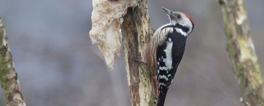 Nature TodayDe grote bonte specht is de meest voorkomende specht in Nederland. Deze specht heeft ook een kleiner 'broertje': de middelste bonte specht is één van de meer zeldzame spechtsoorten van Nederland. Het gaat echter goed met deze soort. Er komen steeds meer broedpaartjes bij. Het voorjaar is een goede tijd om de middelste bonte specht te zien, omdat die nu actief op zoek is naar een geschikte plek om te broeden. De soort komt vooral in het oosten en het zuiden van het land voor. Je kunt de middelste bonte specht herkennen aan zijn witte gezicht met een rood petje; de grote bonte specht heeft meer zwart in zijn gezicht. Ook heeft de middelste bonte specht een zalmroze 'broek'.