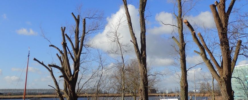 Nature TodayGe... Wat? Het ziet er niet uit en toch zie je het nogal eens: grote bomen die helemaal verpest lijken te zijn. Ze zijn ontdaan van alle kleine takken, de top is eruit, grote takken zijn afgezaagd, er blijft alleen nog een soort skelet over. In termen van boombeheer heet dit ‘het innemen van de kruin’, een officiële term is ‘kandelaberen’. De boom kan wel tot tachtig procent worden ingekort. Het is een afschuwelijk gezicht, dat moet gezegd, maar het wordt gedaan om de boom te behouden of bijvoorbeeld om hem ruimte te geven als hij weer uitgroeit. Niet alle bomen kunnen dit hebben, maar lindes, populieren, wilgen (denk aan knotwilgen) en de in Zuid-Europa bekende platanen kunnen het goed hebben en het komt deze bomen ten goede. Geen zorgen dus, het moet goedkomen met die boom.