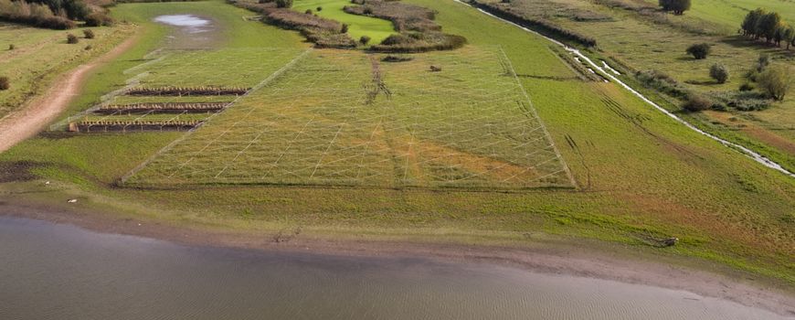 In 2012 zijn we begonnen met grootschalige proeven in de Erfkamerlingschap. Een gebied van een hectare werd drooggepompt en voorzien van een hellende bodem, zodat een hoogtegradiënt ontstond. Hierin werden rietstekken geplant. In te diepe delen sterft het riet. In te droge delen ontkiemt toekomstig wilgenbos. Uiteindelijk stelden we de beste lokale inplanthoogte vast op 10,20 meter boven NAP. Ook bleek het essentieel het jonge riet te beschermen tegen opvreten door ganzen. Met deze richthoogte is in 2018-2020 stapsgewijs negen hectare riet aangelegd.